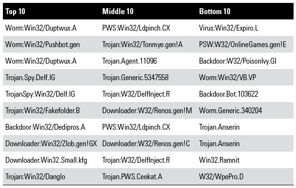 - A set of 65 known malicious samples, the samples were the top ranked most infectious and wide spreading during the 2008-2013 period, as ranked by Kaspersky's yearly reports