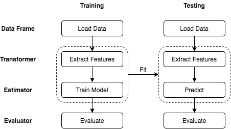 The illustration below displays—in a very simplified way—the two main modes of operation in an ML pipeline: training mode and testing mode. During the training phase, sample data that contains the patterns for training the model is fed into the pipeline, and such patterns are correctly identified by engineers. Subsequently, real world data will be passing through the pipeline in testing mode, and based on the patterns recorded previously in the model, similar patterns found in the new data will trigger positive reactions (predictions).