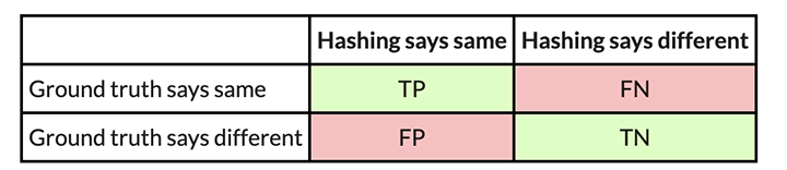 - True negative (TN): PIC hashing correctly predicted the functions are different.