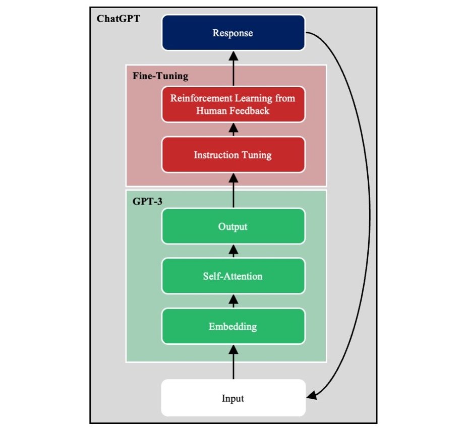 Figure 2 shows major components of GPT-3, an exemplar LLM embedded in the conversational agent ChatGPT. We discuss each of these components in turn.