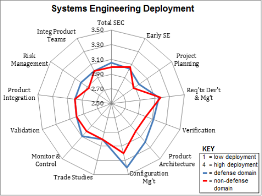 - The strength of the relationships between SE deployment and project performance is stronger for non-defense projects than for defense projects.