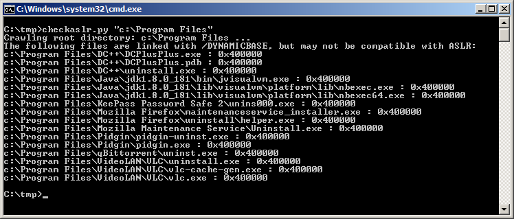 Whether you are a security researcher, a developer, or anybody else interested in the security of executables on your system, you can check for PE files that contain the problematic combination of "Dynamic base" and have a stripped relocation table using the following python script that I have created: (checkaslr.py):