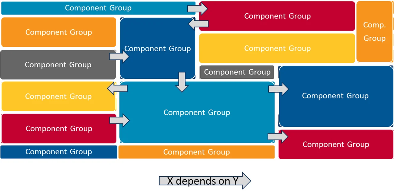 The components are the logical sets of data objects and the actions that the system performs on those objects. The actions performed on data objects are typically encoded in software functions and methods, and these functions and methods are typically stored in software libraries. The component groups roughly correspond to software libraries, but the migration process may rearrange the contents of existing software libraries to meet the migration goals.