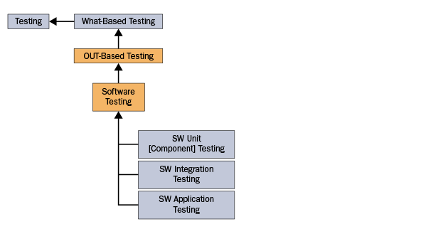 OUT-Based Test Types. The first subtype of what test types varies based on the type of object under test (OUT). Specifically, one can test