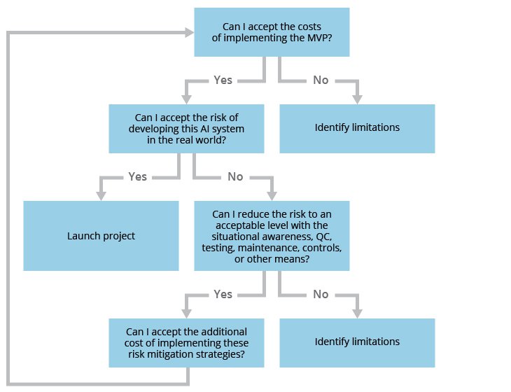 Finally, some risks cannot be mitigated. Researchers know how to build ML systems, but that assuring ML systems remains an open challenge. Similarly, adversarial ML attacks and defenses are still being discovered and explored. At present, we must accept a certain level of risk in deploying AI systems while researchers converge on best practices in these fields. Even with all of these factors to keep in mind, I don't want to discourage taking risks. Instead, my point here is to acknowledge the risks, and if they can't be mitigated, determine if they fall within tolerance before launching.