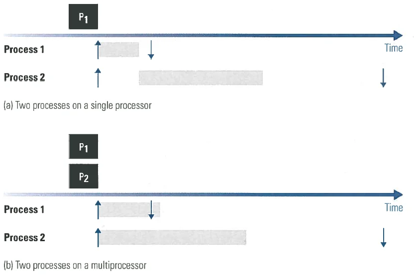 Figure 3a shows a legacy software system using a single hardware processor with two software processes where the timing requirements are satisfied. An arrow pointing up indicates the time when a process is requested to execute and an arrow pointing down indicates the deadline of a process. Figure 3b shows that when the same software is migrated to a multicore processor with two hardware processors on a chip, a timing requirement is violated. Hence, care must be taken when migrating legacy real-time software to a multicore since we expect all major software systems to undergo this transition to multicore processors as the commercial marketplace evolves.